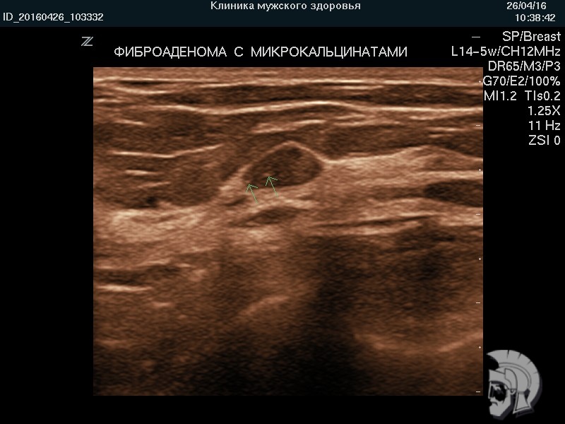 УЗИ груди. Фото фиброаденомы у мужчины 28 лет.
